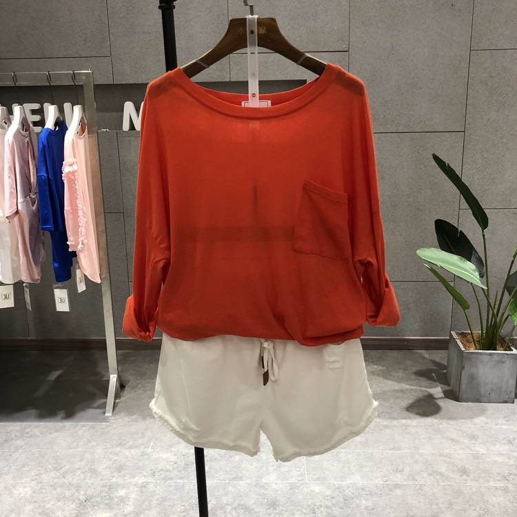 夏款2018新品8032单口袋圆领宽松大版纯色长袖防晒衣T恤女