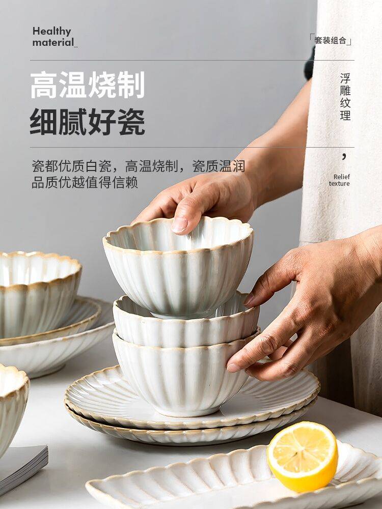 日式陶瓷碗盘子菜盘家用碗碟盘组合创意餐具网红ins风早餐甜品盘