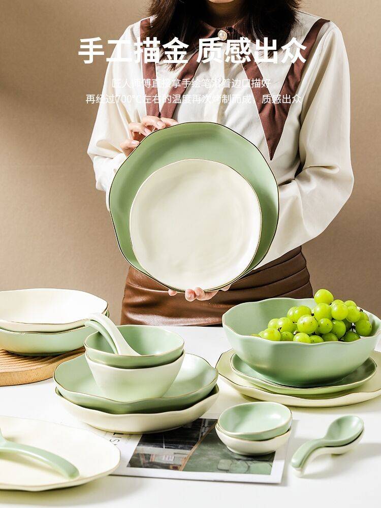 轻奢陶瓷菜盘家用欧式金边餐具套装北欧风格饭碗汤碗菜盘子组合