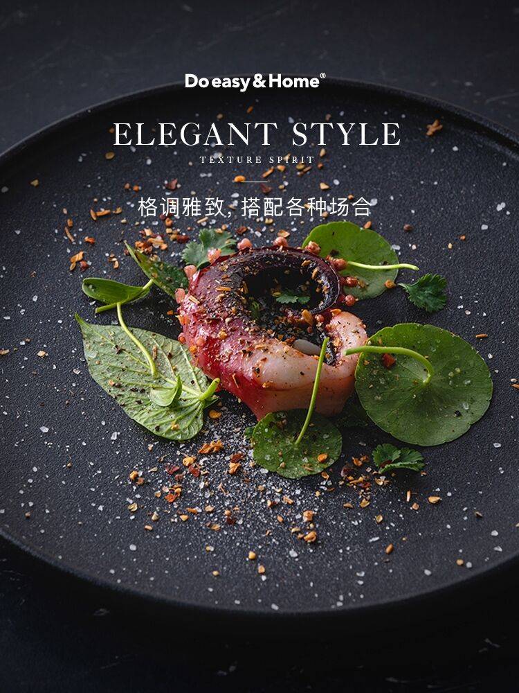 流沙黑色磨砂平盘西餐盘家用牛排盘创意北欧餐具陶瓷菜碟菜盘
