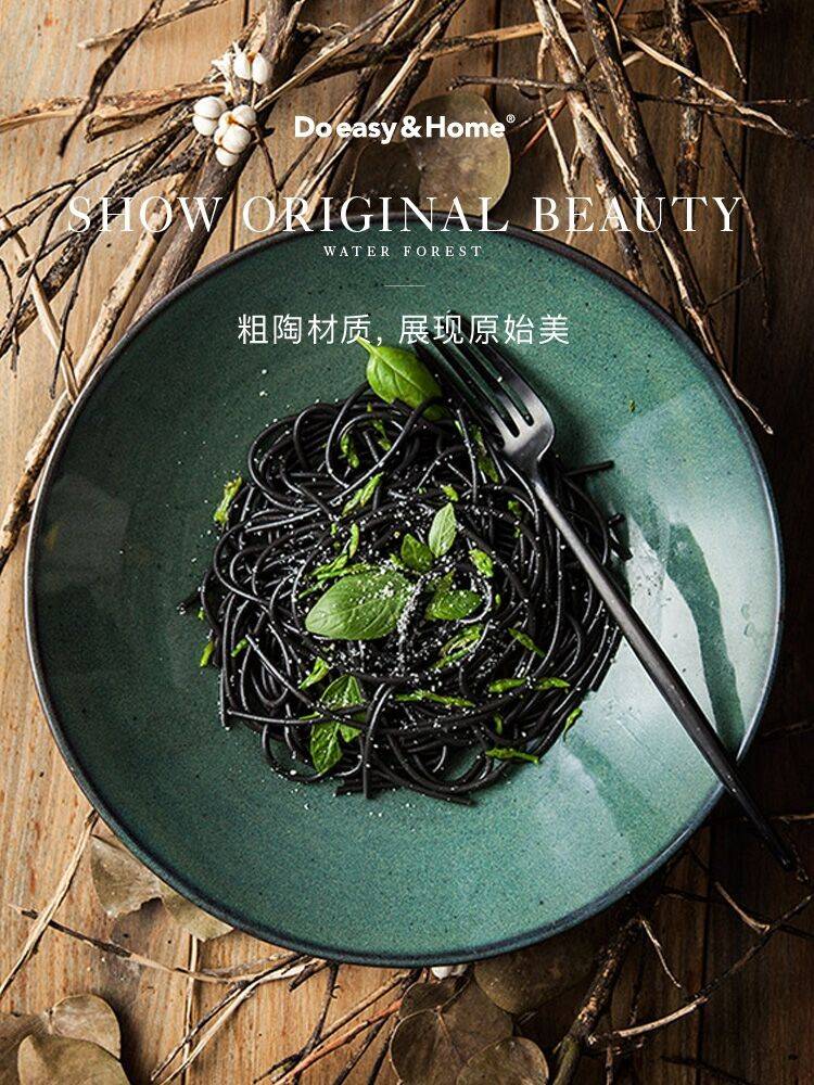 乌苏绿牛排餐盘 陶瓷西餐餐盘创意牛排盘意面盘菜盘家用盘子