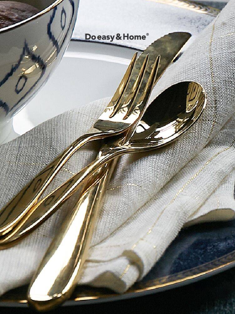 Vahe创意不锈钢金色刀叉勺三件套 西餐餐具套装牛排刀叉礼盒