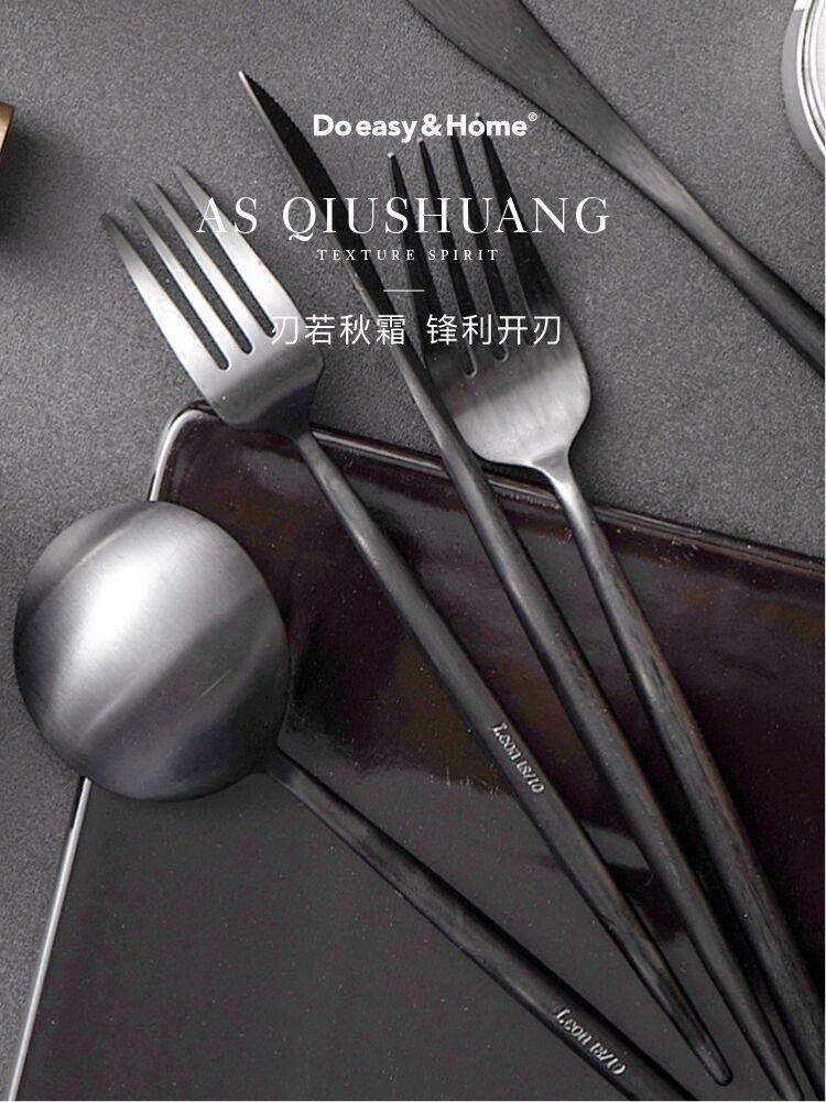 Leon欧式黑色304不锈钢牛排刀叉勺创意甜品勺牛油刀西餐餐具