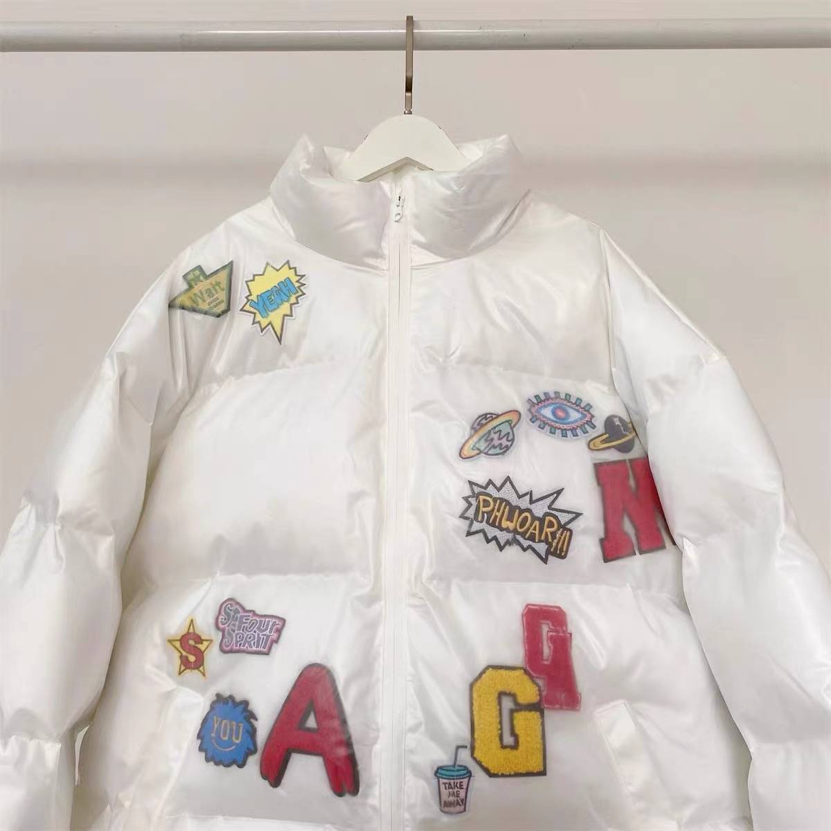 冬季美式嘻哈高街立领棉衣男情侣潮牌宽松百搭刺绣防水加厚外套男