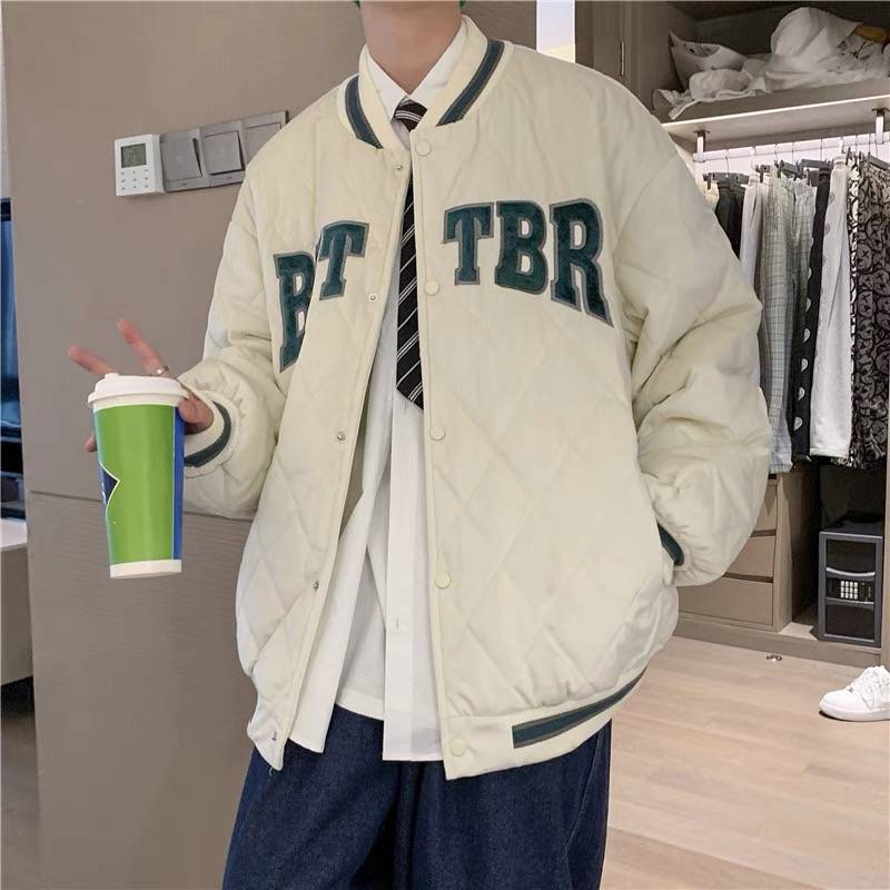 秋冬季立领棉衣男士潮牌菱形格加厚面包棉服BF港风宽松棒球服外套