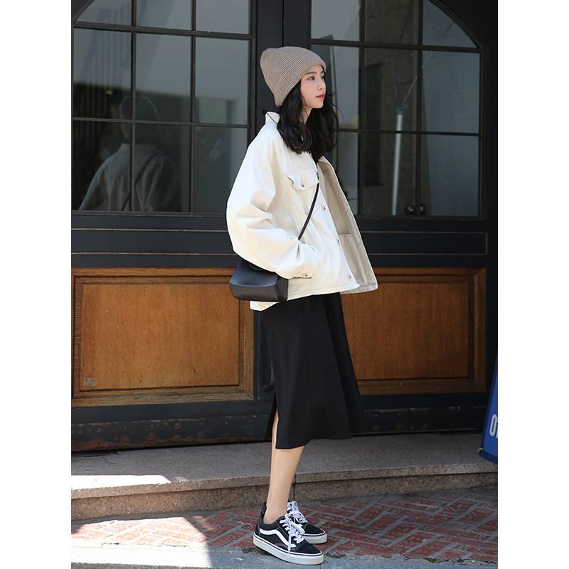 夕蒙2019初春春秋短款夹克白色工装休闲薄款牛仔外套女韩版宽松bf