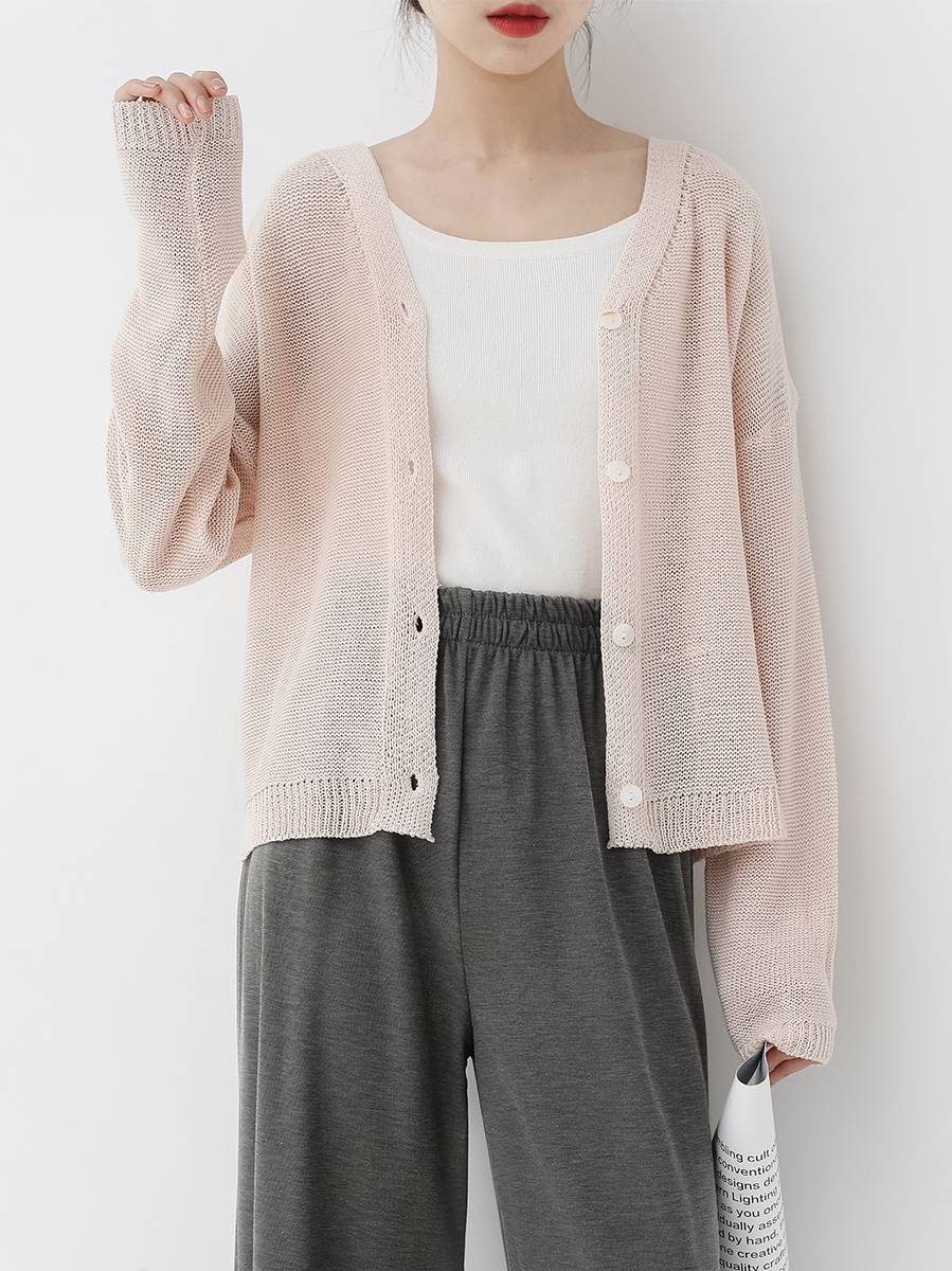 Felicials2019春季新款韩版针织纯色长袖开衫上衣气质女