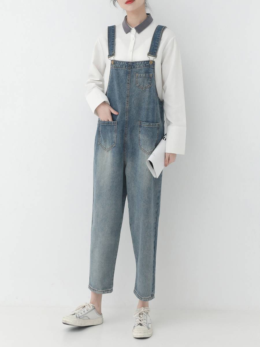 Felicials的小店2019春新款森女系韩版宽松学生背带牛仔裤子女九分显瘦