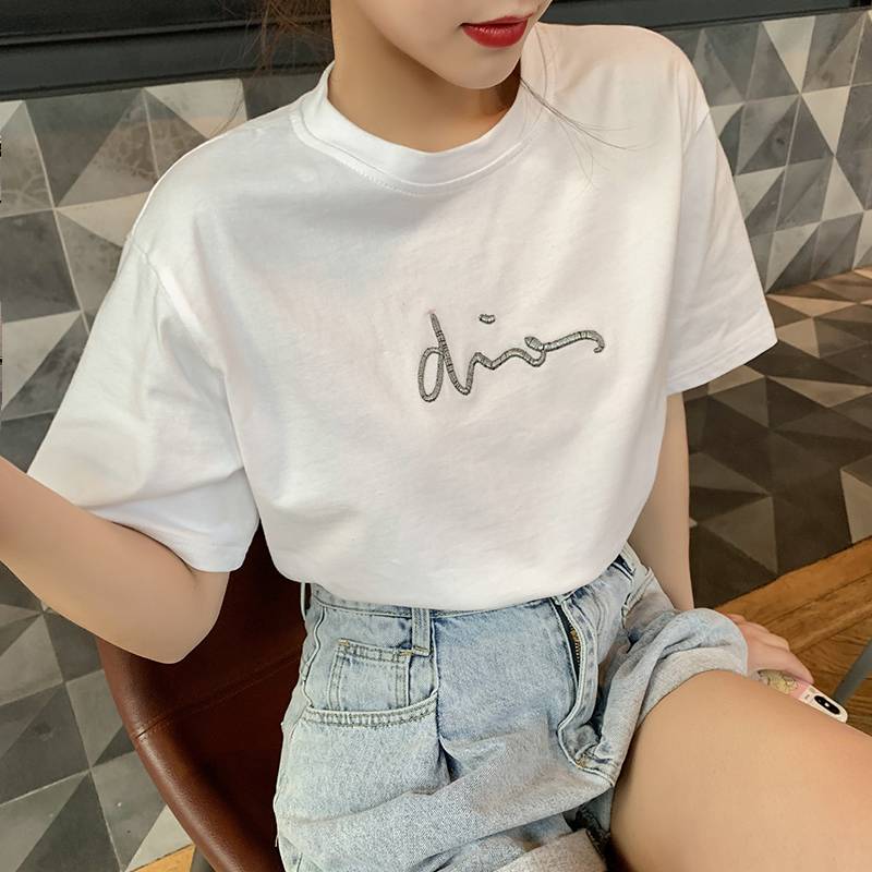 Felicials夏季女装2019新款韩版体恤宽松百搭学生纯色上衣短袖t恤