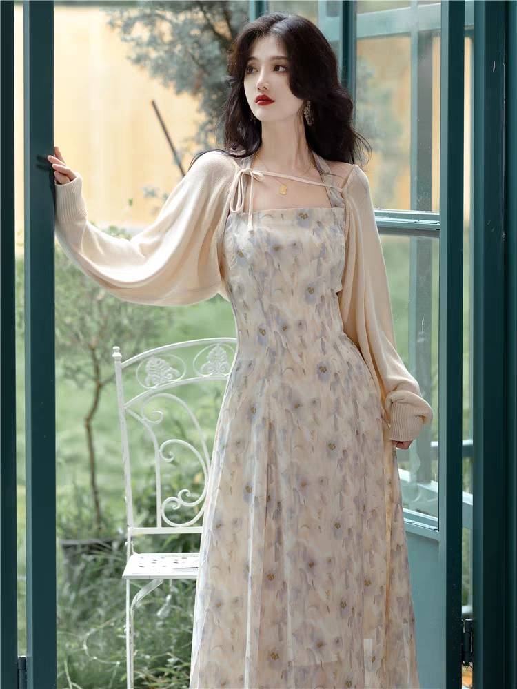 秋装气质女神范新款甜美仙气超仙别致漂亮绝美法式温柔复古连衣裙
