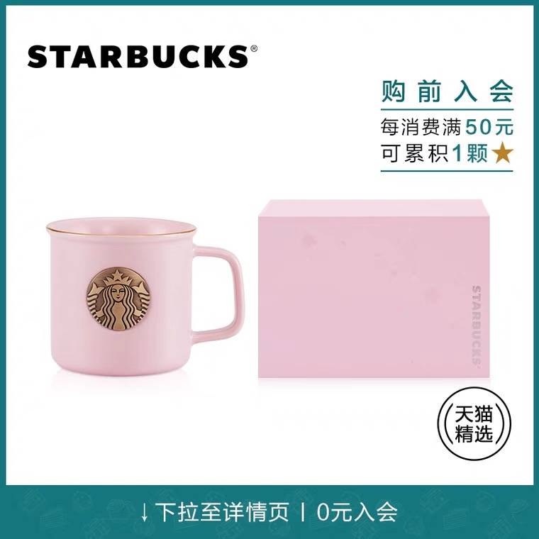 星巴克 355ml粉色复古款铜色印章马克杯情侣家用水杯