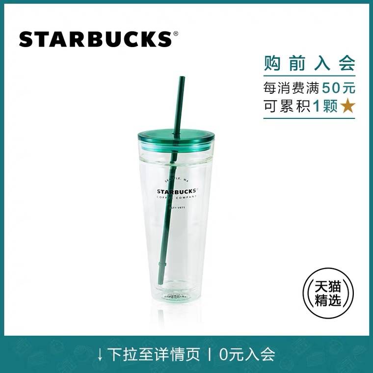【李宇春同款】星巴克20oz经典款玻璃吸管杯大容量透明带盖双层杯
