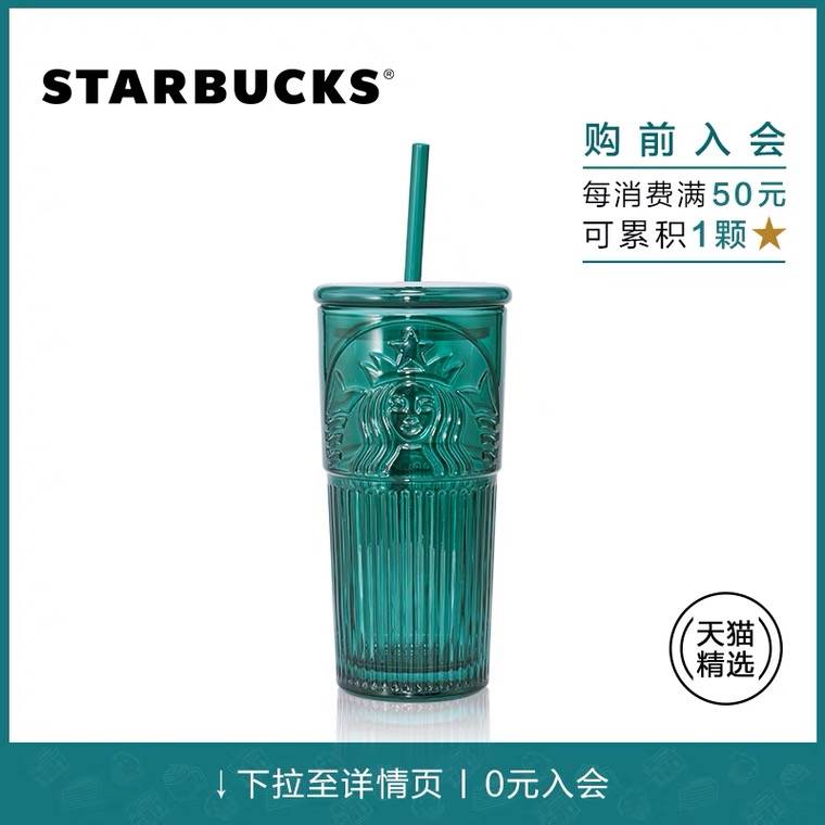 星巴克 550ml墨绿色女神款玻璃杯 大容量带盖水杯 天猫精选款