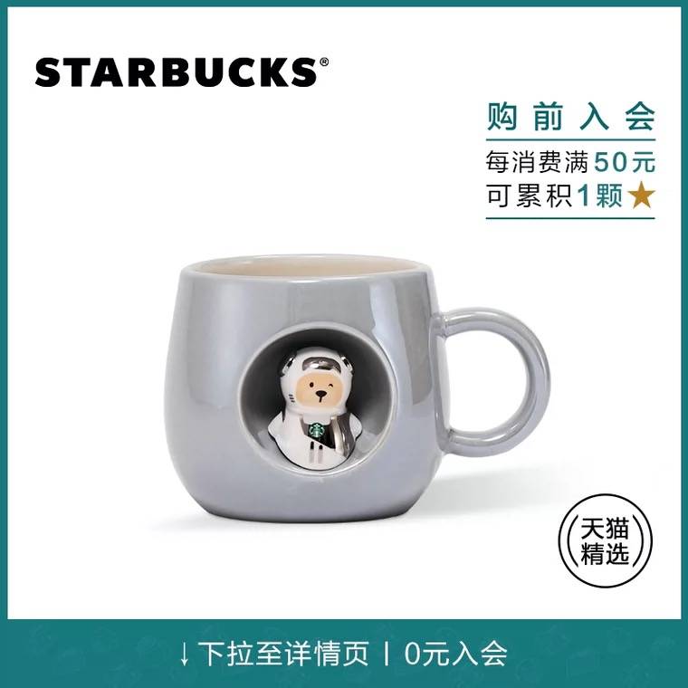 星巴克 440ml时光旅行款立体小熊装饰马克杯家用水杯天猫精选款