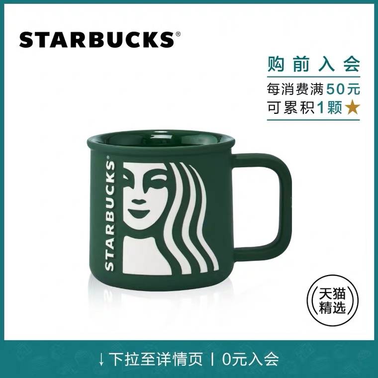 星巴克 320ml墨绿色女神款陶瓷马克杯 简约咖啡水杯 天猫精选款