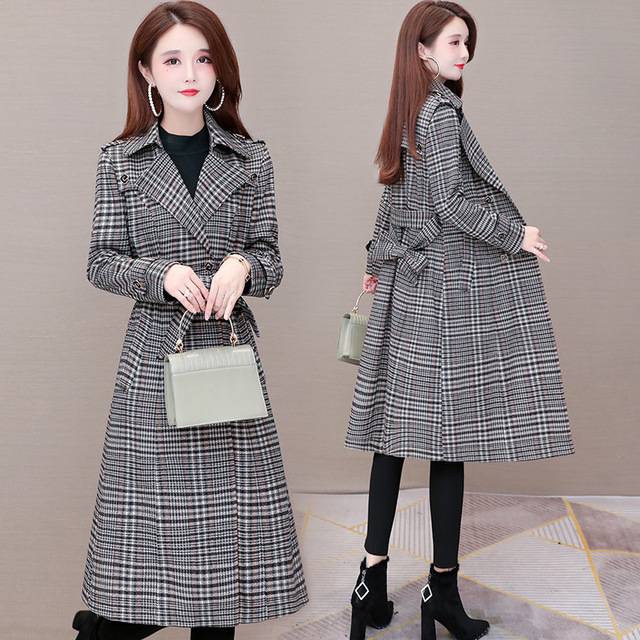 7099冬季新款女装设计师品牌复古兰格子长款毛呢外套大码羊毛大衣