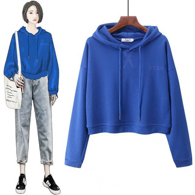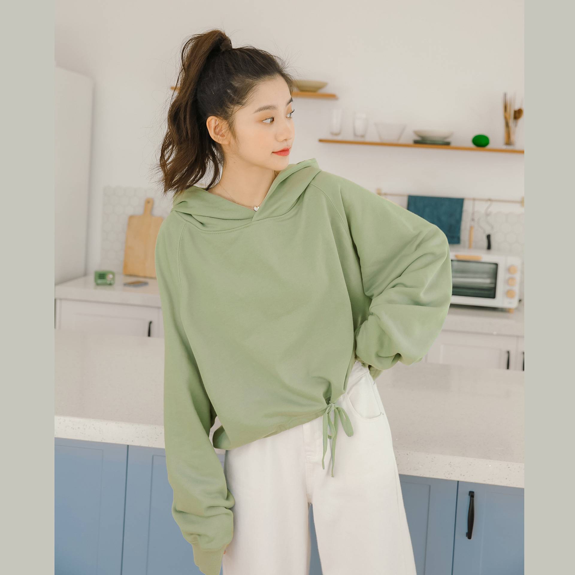 2019秋季新款ins韩版宽松纯色连帽系带短款全棉卫衣