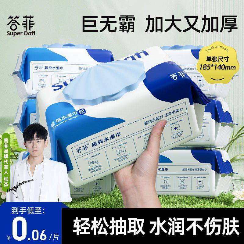 【答菲】湿巾80抽纯水无敏加大加厚擦手口柔软不伤肤湿纸巾带盖