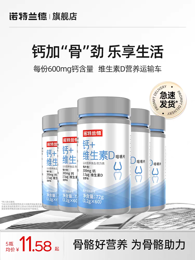 诺特兰德钙片维生素d咀嚼片青少年碳酸钙补男女性中老年非液体钙