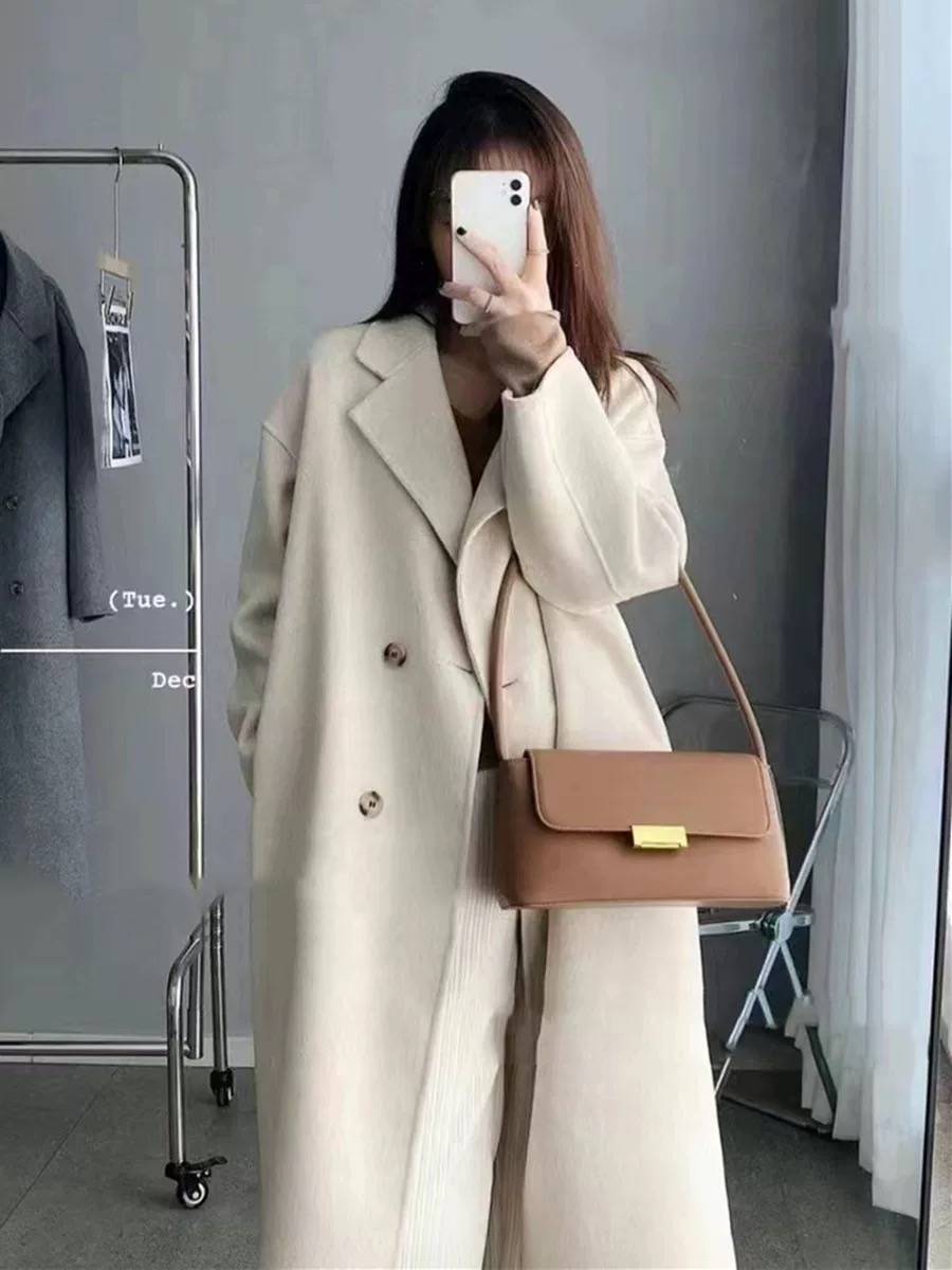高级感羊毛羊绒大衣女秋冬季2024新款韩系赫本风毛呢外套加厚呢子