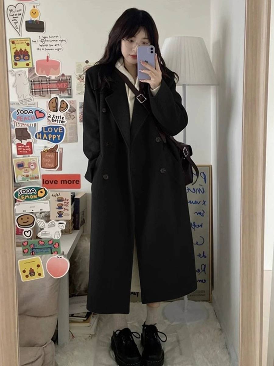 2020年秋冬新款韩版双面呢手缝长款羊毛大衣单排扣中长款毛呢外套