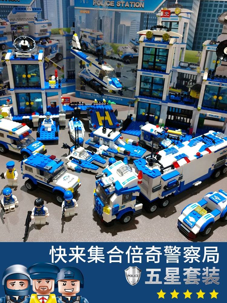 儿童积木拼装玩具益智力5岁男孩子6小颗粒动脑拼图车7樂高8警察9
