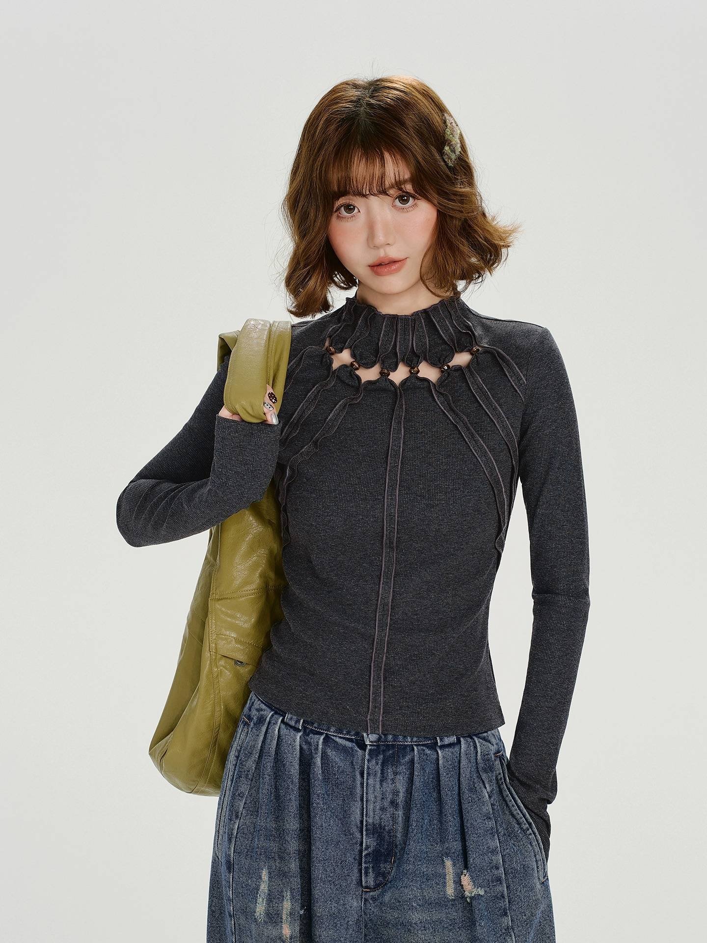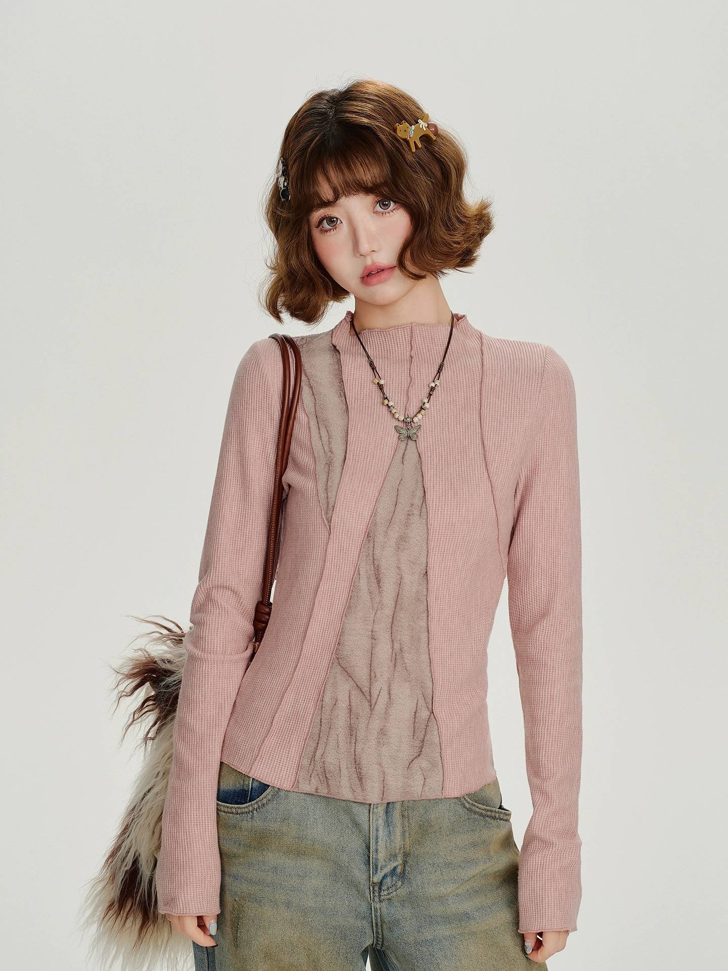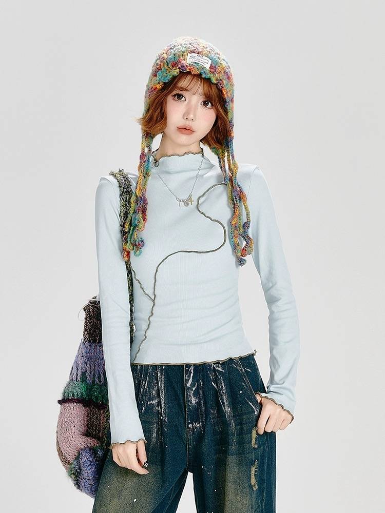 chic撞色包边V领针织衫早秋气质套头长袖宽松基础款打底衫毛衣女