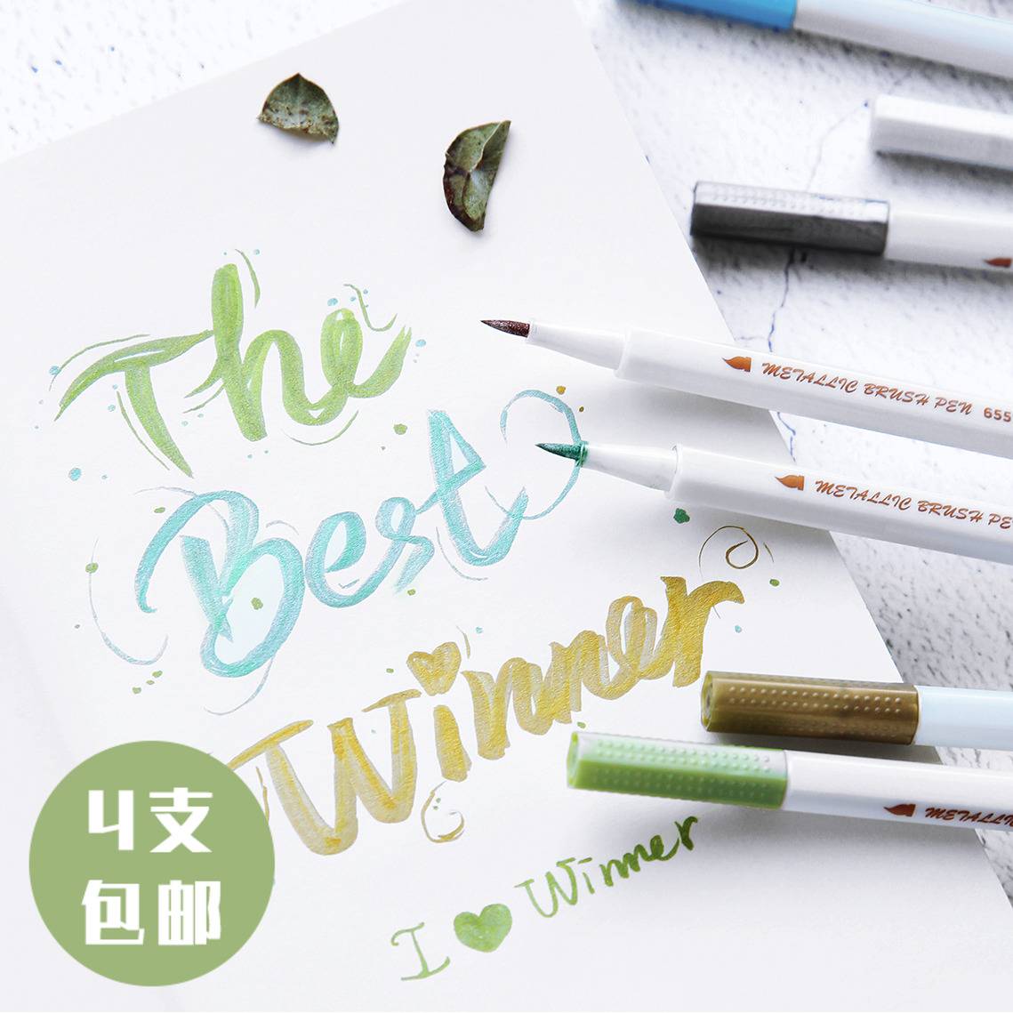金属珠光彩色油漆笔软头笔荧光笔DIY黑卡相册记号闪光专用笔