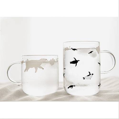 北极熊企鹅极地手工高温双层便携茶杯玻璃杯创意杯子潮流水杯