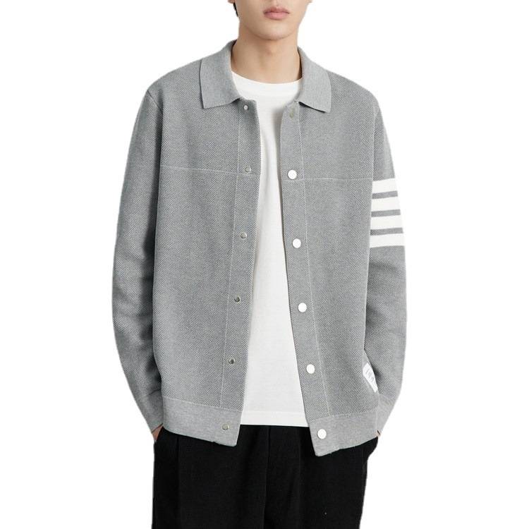 吾格装密翻领提花针织夹克2023春季新款潮开衫型毛衣外套