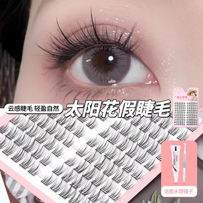 懒人假睫毛三部曲太阳花假睫毛女10排装自然仿真单簇新手嫁接细梗