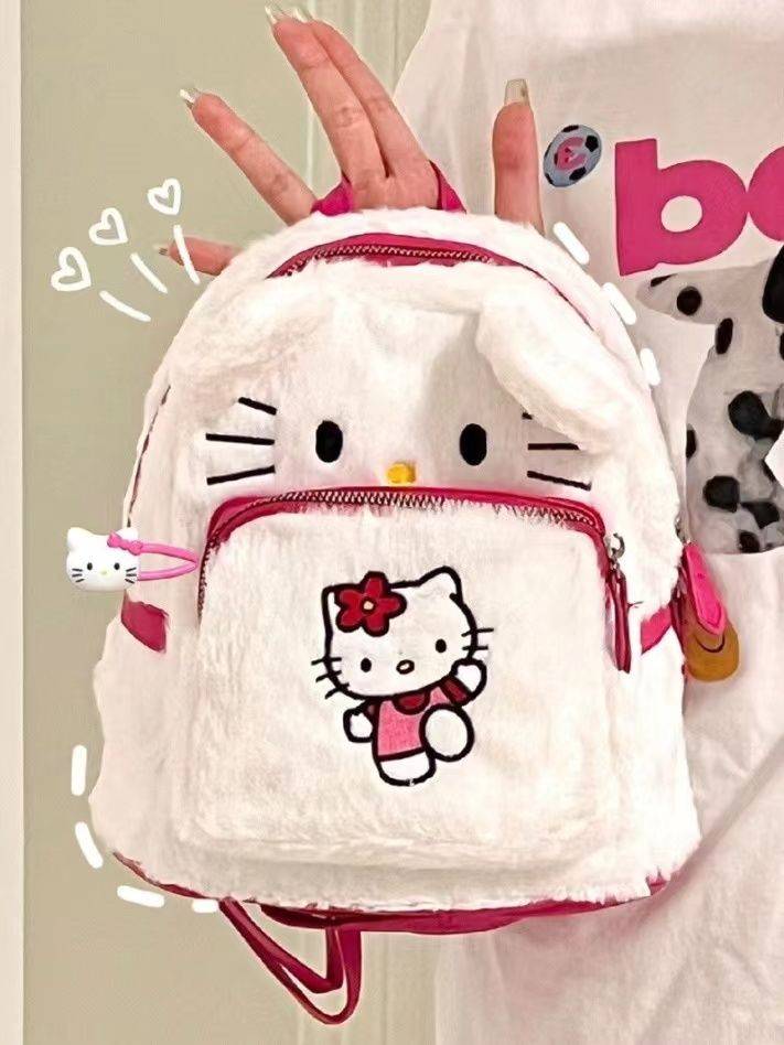 卡通可爱毛绒三丽鸥双肩包背包KT猫书包学生库洛米布丁狗手提包