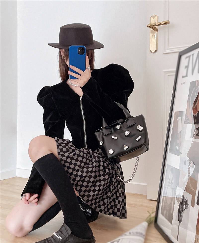 冬款加厚呢子裙2018韩版高腰暗格纹A字型半身裙AC1417