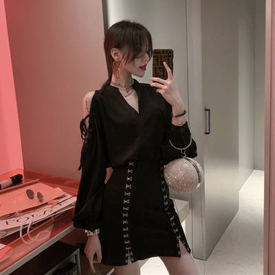 秋装女 2018新款假两件连帽针织衫宽松薄款慵懒风毛衣外套