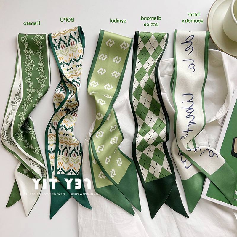 显白显嫩的绿色小丝巾女春夏细窄飘带发带扎发绑包包装饰长条领巾