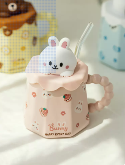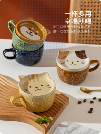 杯杯星球陶瓷杯子带盖咖啡杯家用日系卡通柴犬熊猫情侣水杯早餐杯 19.90 已售:0件