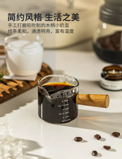 杯杯星球玻璃小奶盅牛奶壶浓缩咖啡刻度量杯咖啡加奶杯木柄小奶罐 12.90 已售:1件