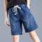 胖mm大码牛仔短裤女夏2018新款韩版宽松百搭松紧腰女士五分裤中裤