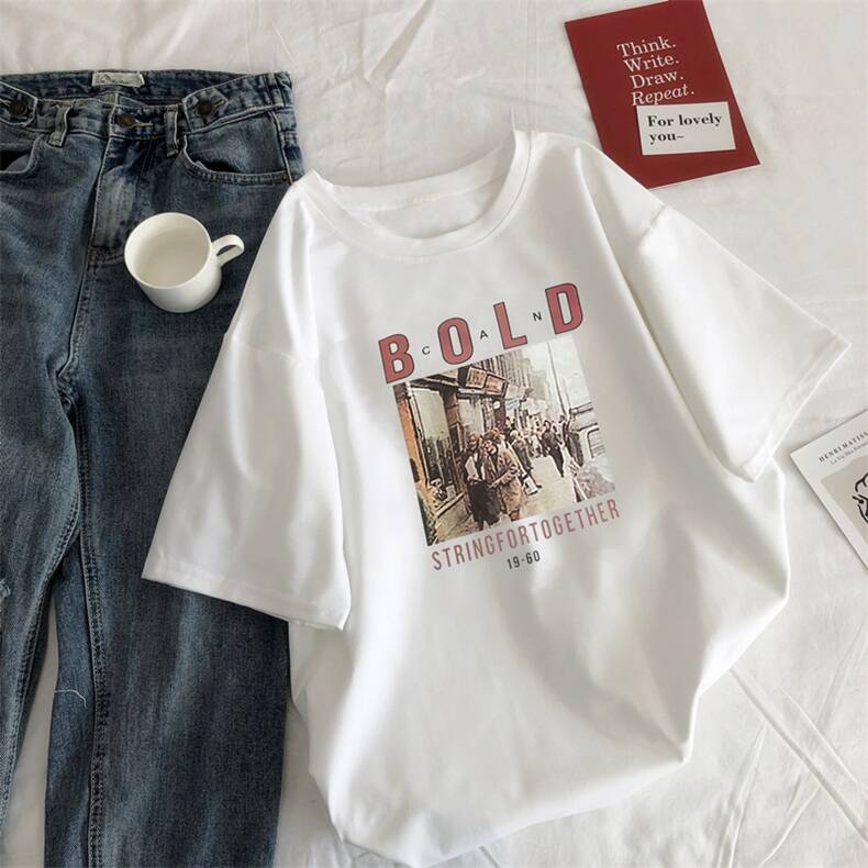 白色短袖T恤女宽松2020夏季韩版超火百搭新款ins上衣