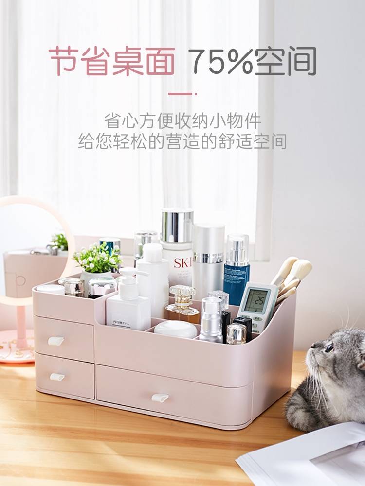 家用抽屉式化妆品收纳盒大号桌面宿舍护肤品整理神器