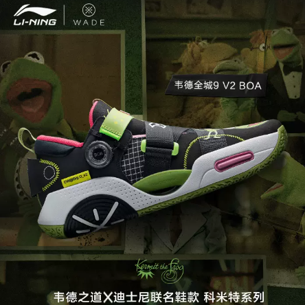 李宁韦德全城9 V2篮球鞋男迪士尼联名Muppets科米特beng减震球鞋