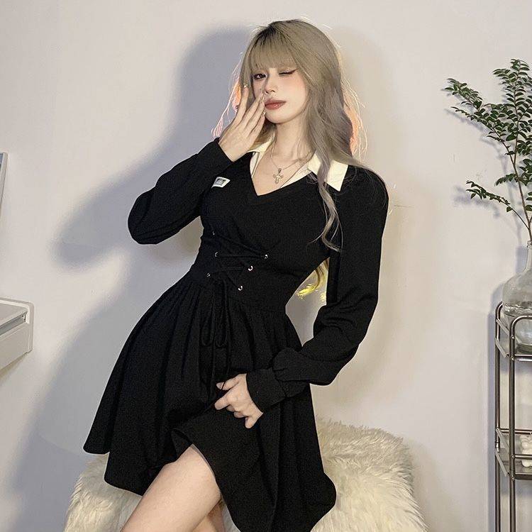 乐町气质法式衬衫连衣裙春装2021女装白色翻领气质甜美连衣裙子