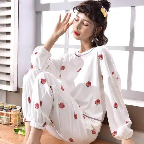 冬季睡衣女秋冬款长款长袖全棉保暖中厚