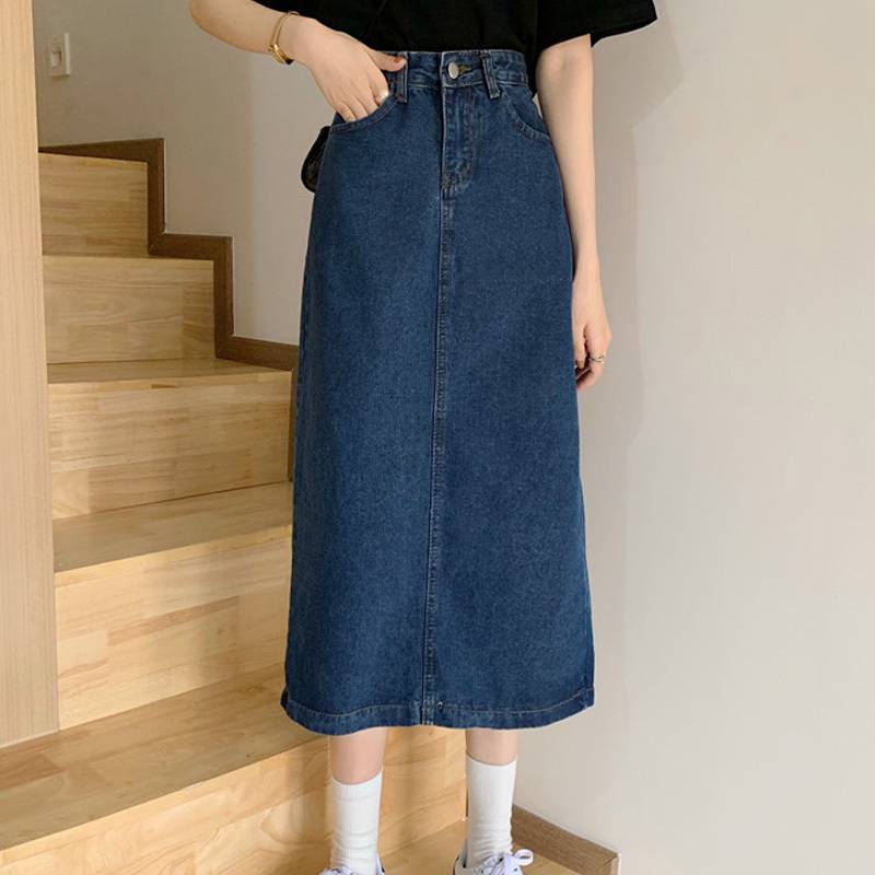 2021春季新款韩版宽松显瘦复古高腰牛仔裙半身裙休闲中长裙子