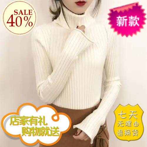 秋冬2018新款白色超火加厚加绒高领毛衣女套头短款修身针