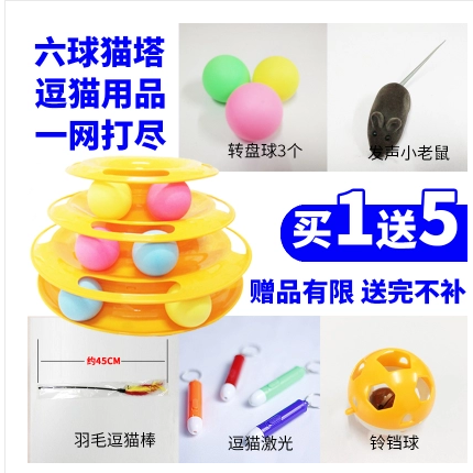 猫玩具逗猫棒幼猫猫咪用品包邮宠物小猫爱三层转盘球套装逗猫神器