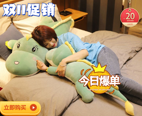 卡通恐龙抱枕少女心玩偶批发婚庆活动公仔抛洒陪睡娃