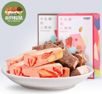 三只松鼠牛轧糖120gx2 休闲零食特产软糖花生牛扎草莓糖果