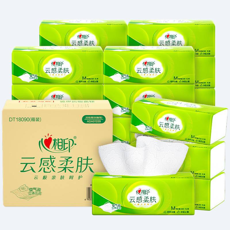 心相印云感柔肤抽纸M码90 抽 20 包整箱装