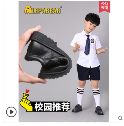 儿童黑色英伦学生表演2019春新款大中小男孩演出软底男童真皮皮鞋